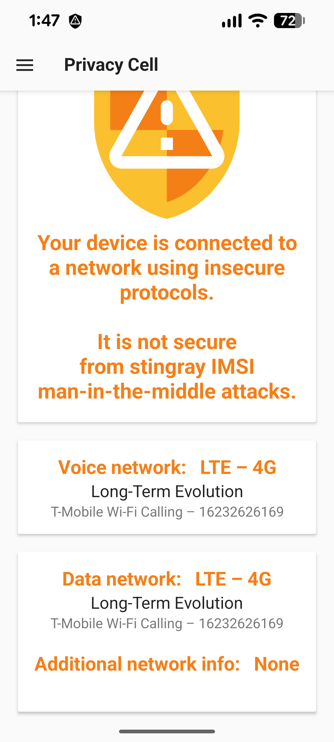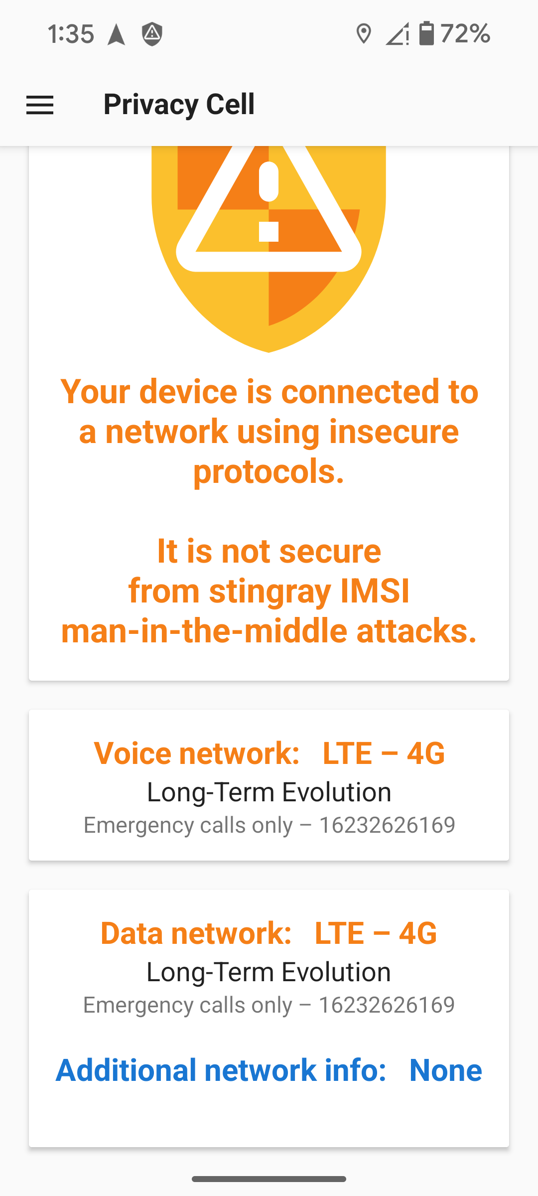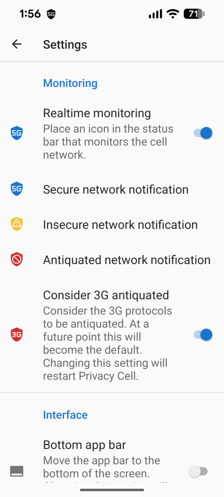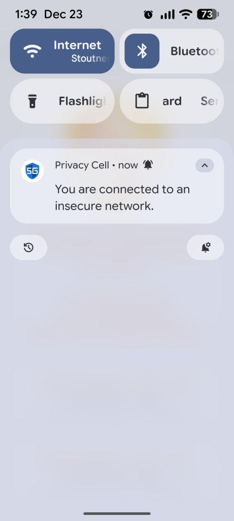 Privacy Cell 1.12 was released on 22 December 2025. This release bumps the target API to 36 (Android 16). In Android 16, the notification icon has been changed to always show the app icon (probably to prevent icon spoofing, where a malicious notification displays the icon of a different app to hide its identity). But this resulted in an annoying problem, where the blue icon would be displayed even when connecting to an insecure network.
